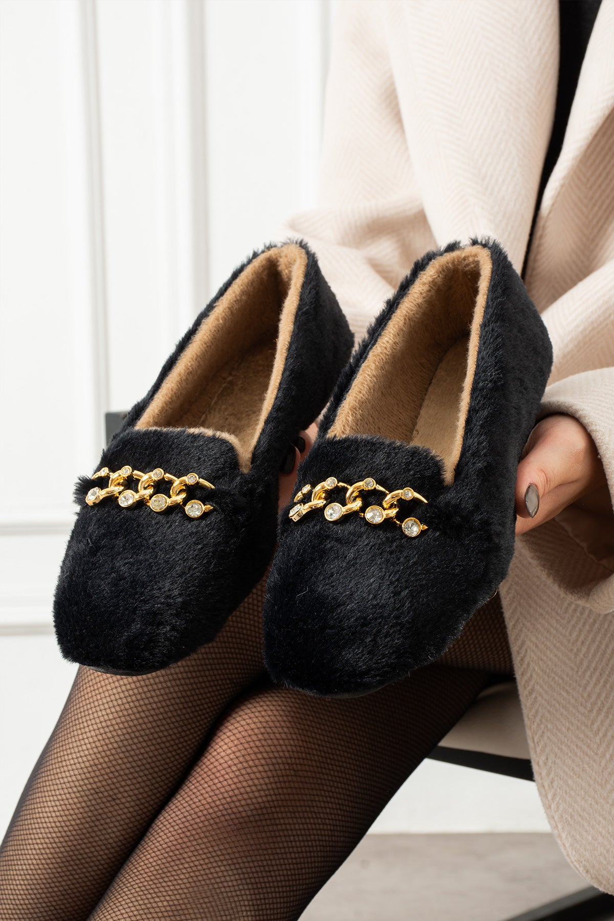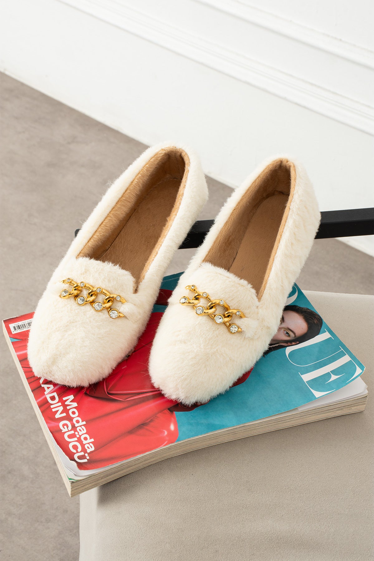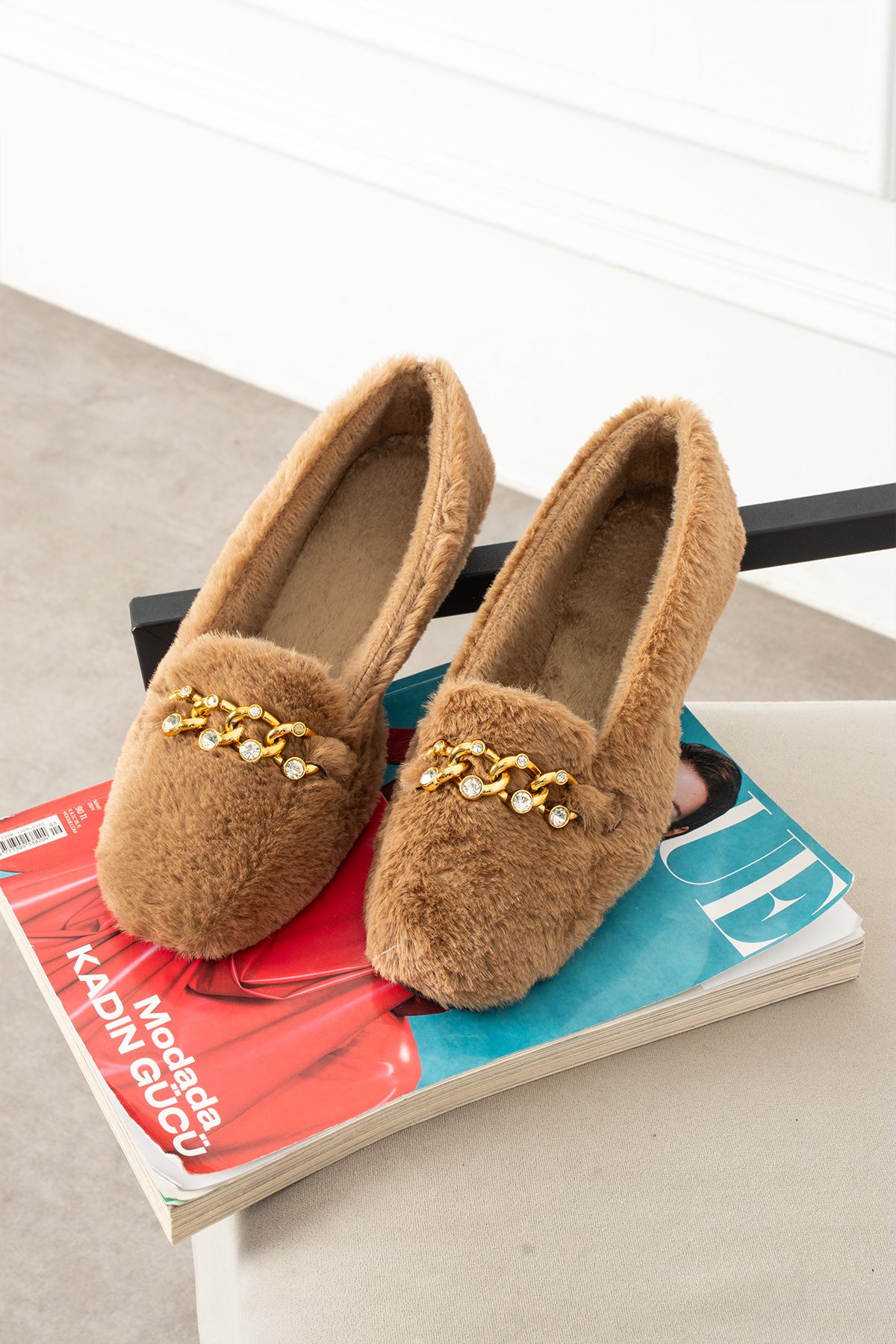 İsabella Peluş Tüylü Tek Tokalı Kadın Pufy Ayakkabısı Balerin Babet