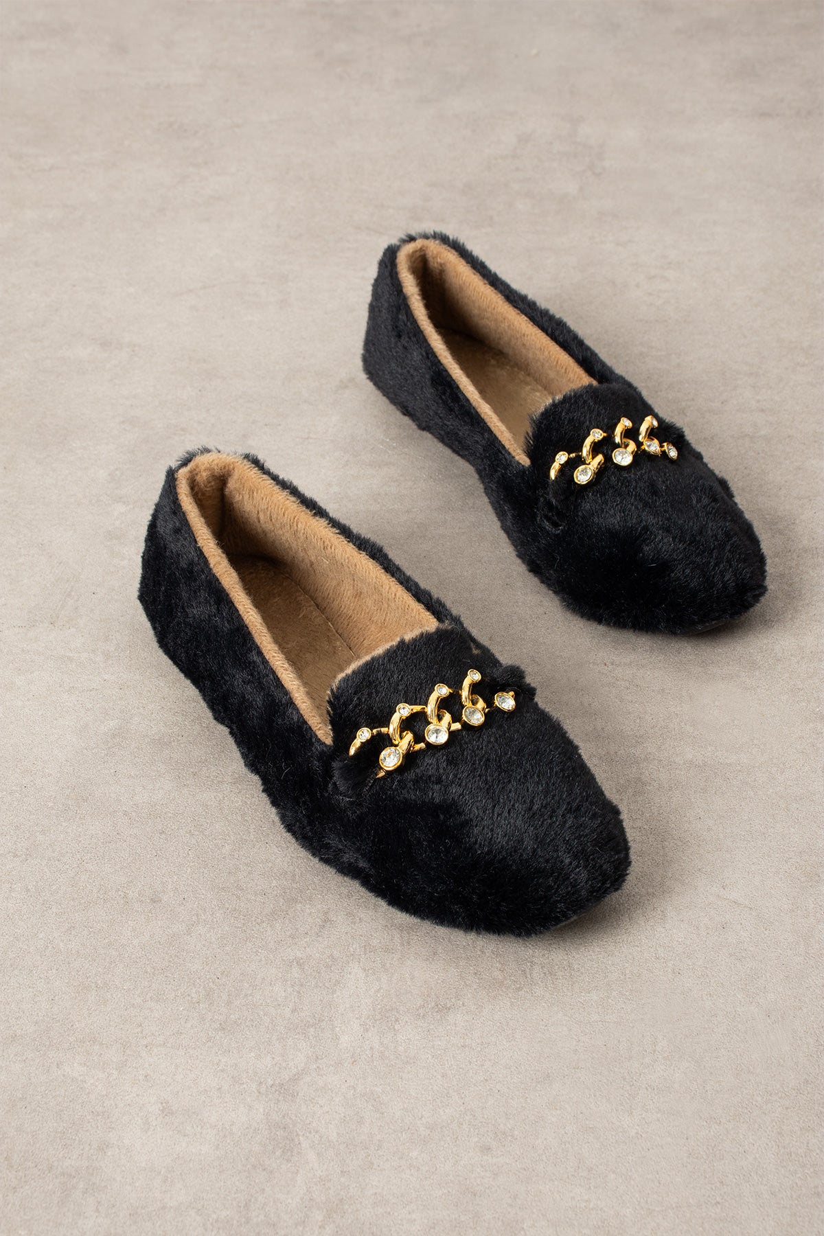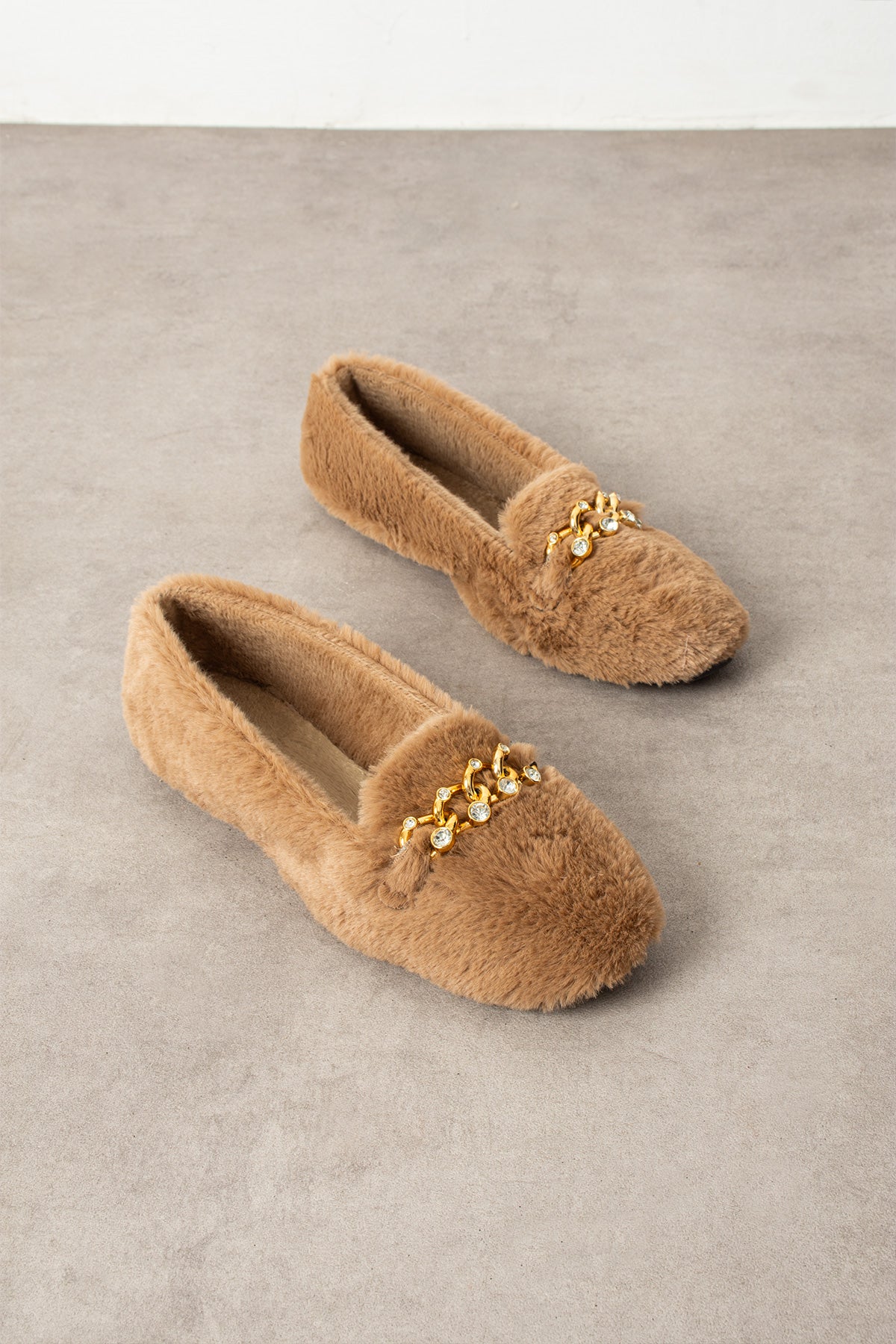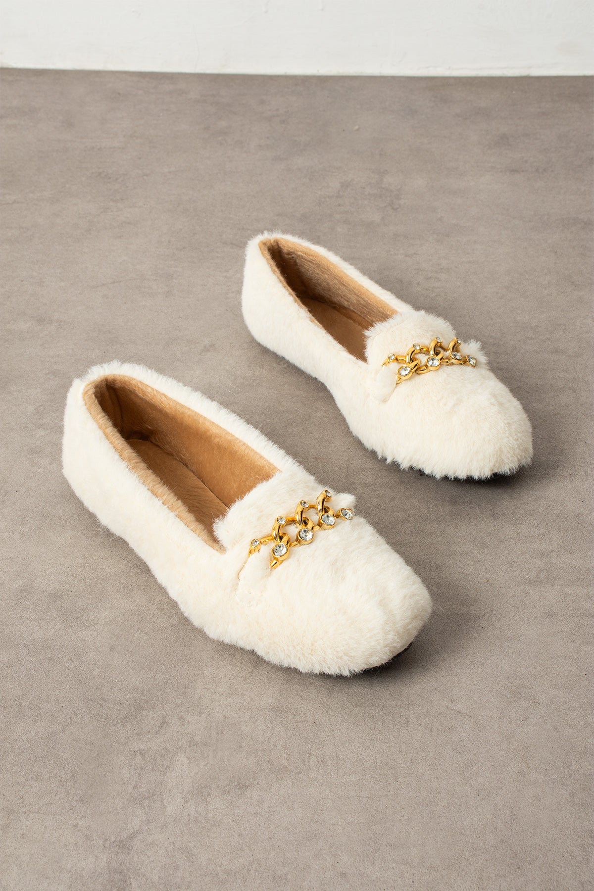 İsabella Peluş Tüylü Tek Tokalı Kadın Pufy Ayakkabısı Balerin Babet