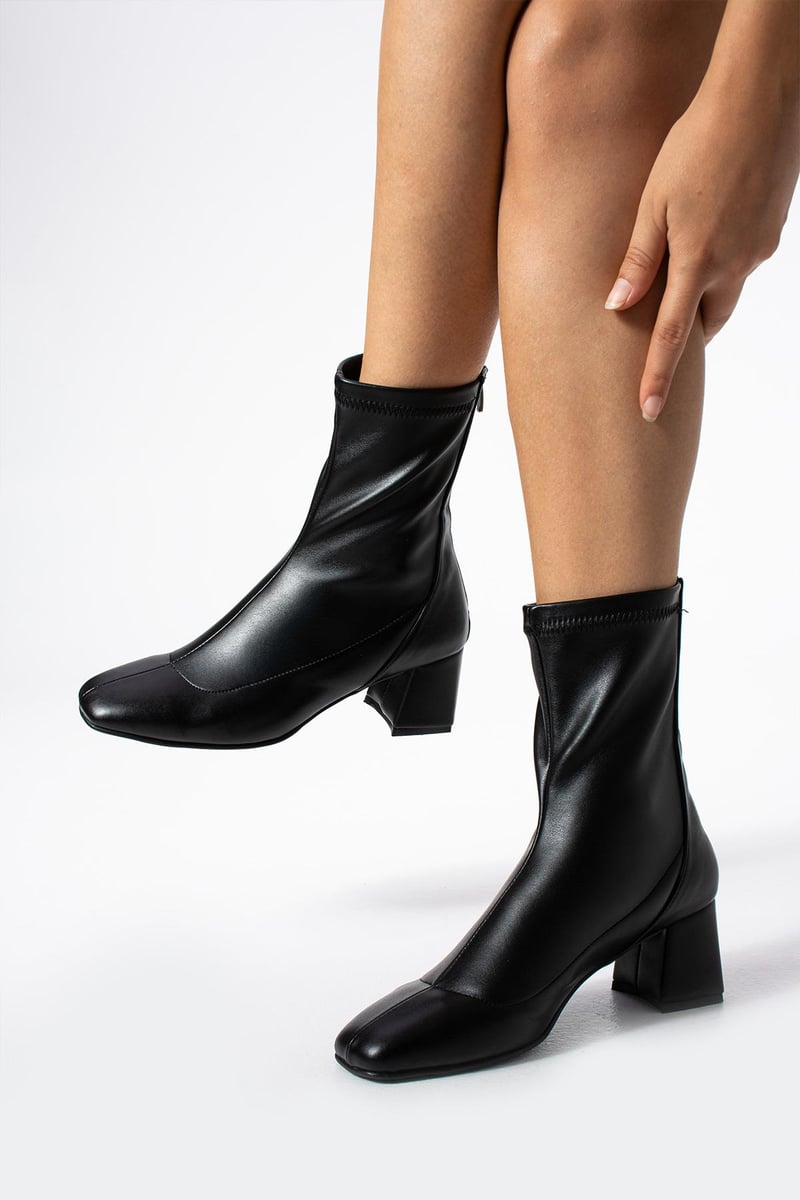 London Streç Arkadan Fermuarlı Kadın Topuklu Bot