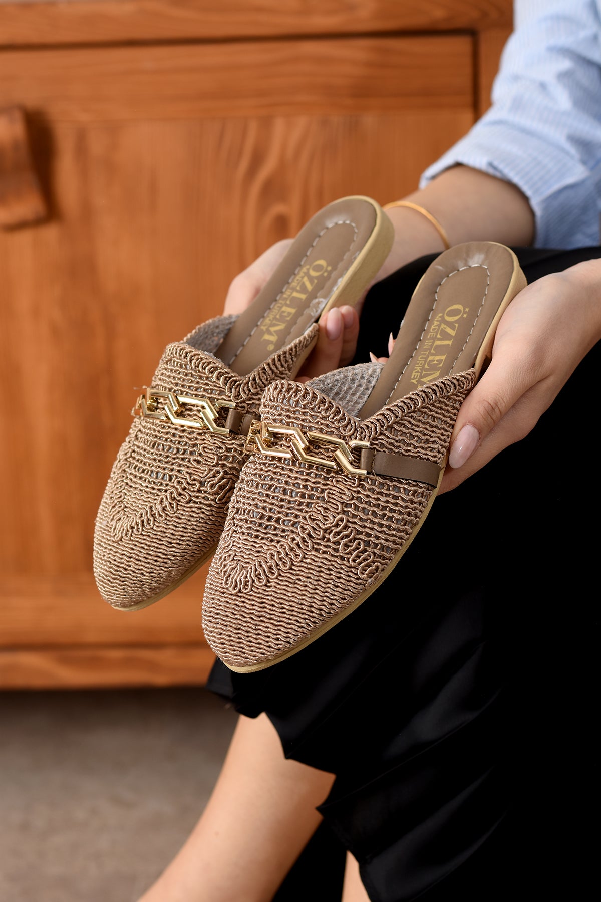 Mary Kadın Dantel Işlemeli Zincirli Ev Terliği Dış Mekan Terliği