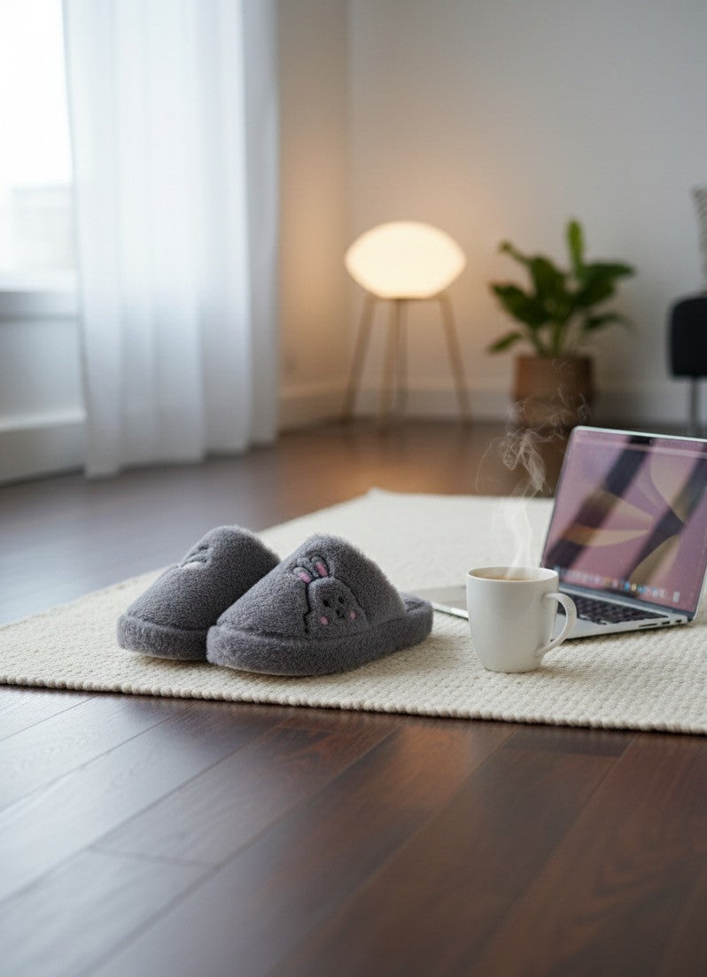 Rabbit Gri Kadın Ev Terliği 2'li Set