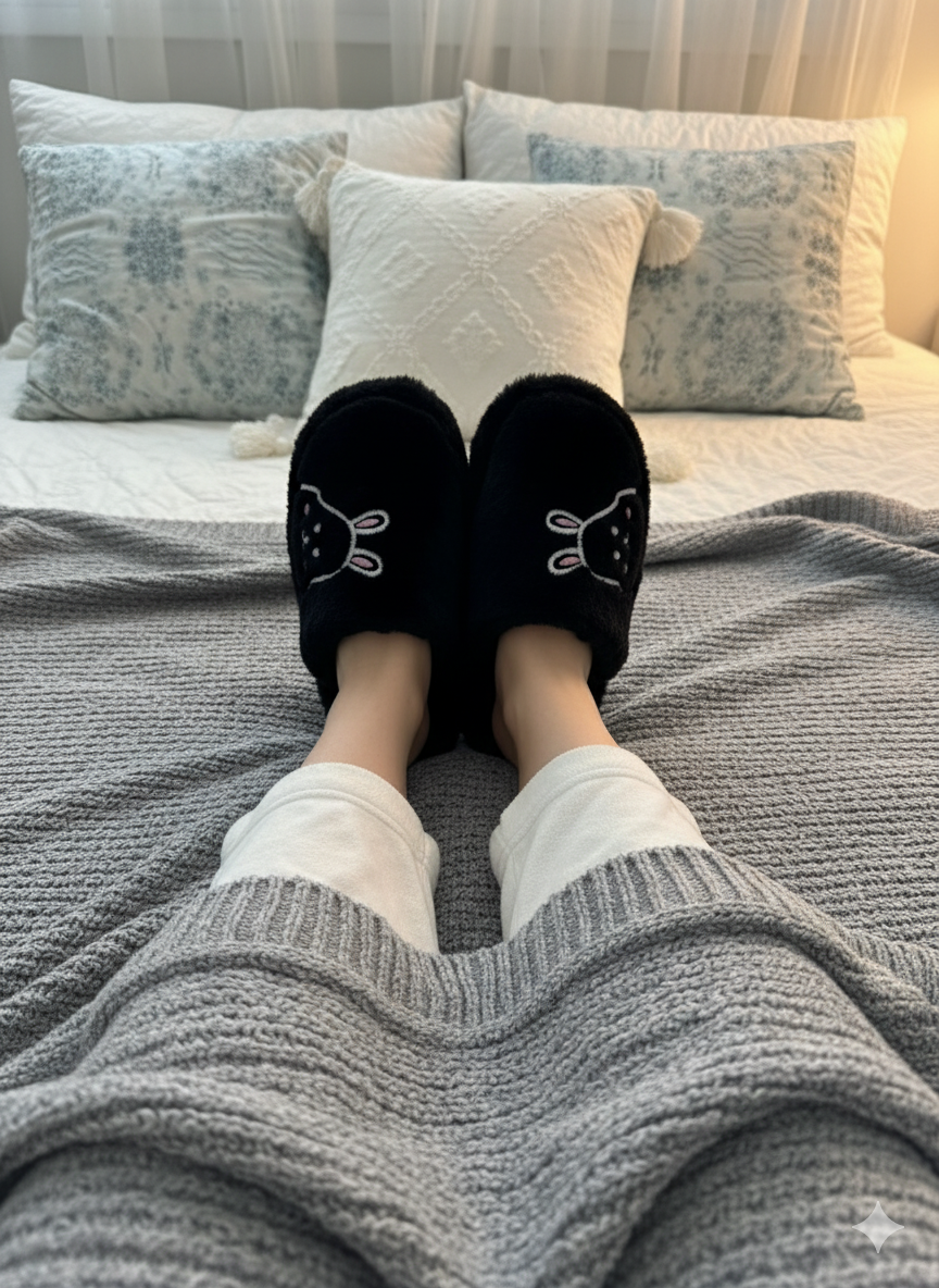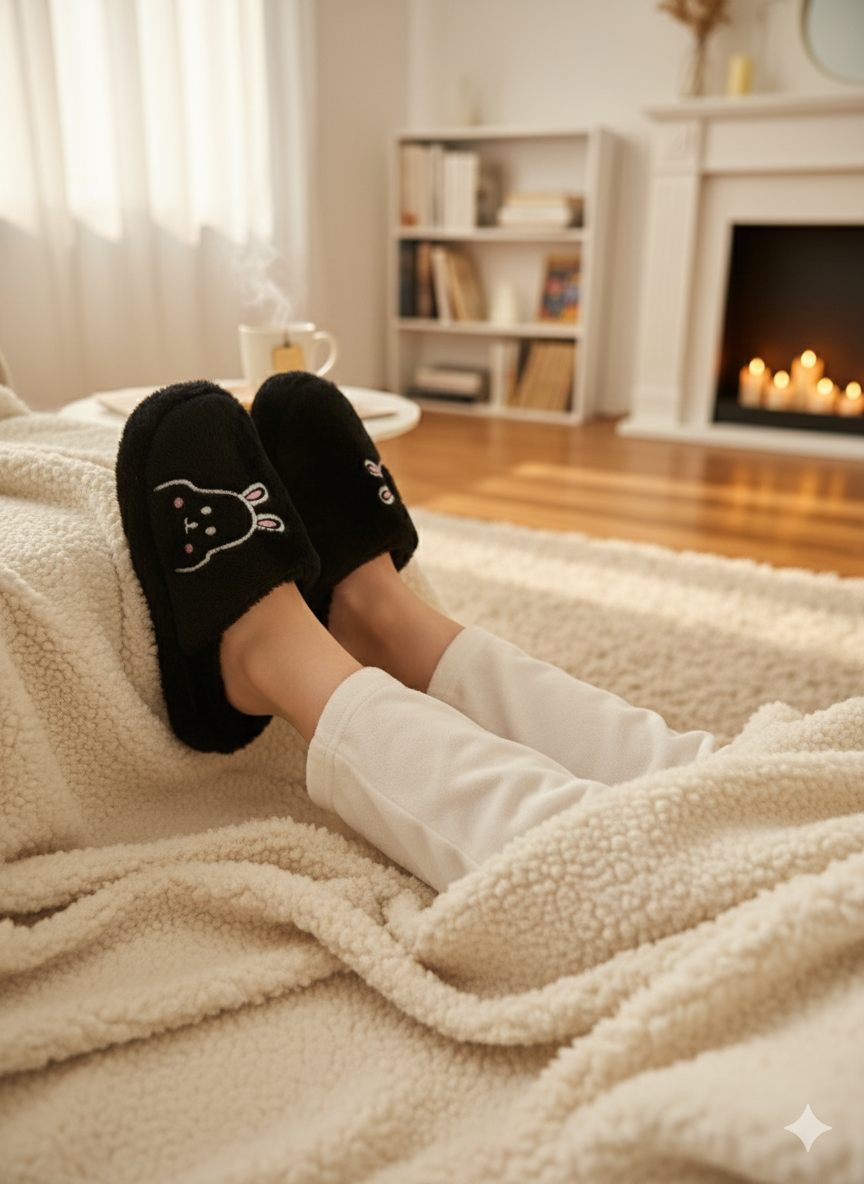 Rabbit Pembe Kadın Ev Terliği Peluş Terlik Çeyiz ve Bohça Terliği Ses Yapmaz Kalın Taban
