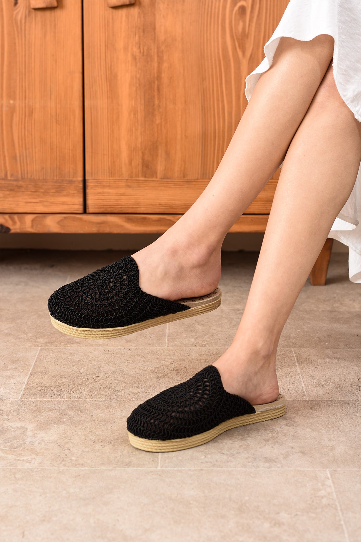Samira Kadın Günlük Konforlu Örme Işlemeli Terlik Hasır Tatil Çeyiz