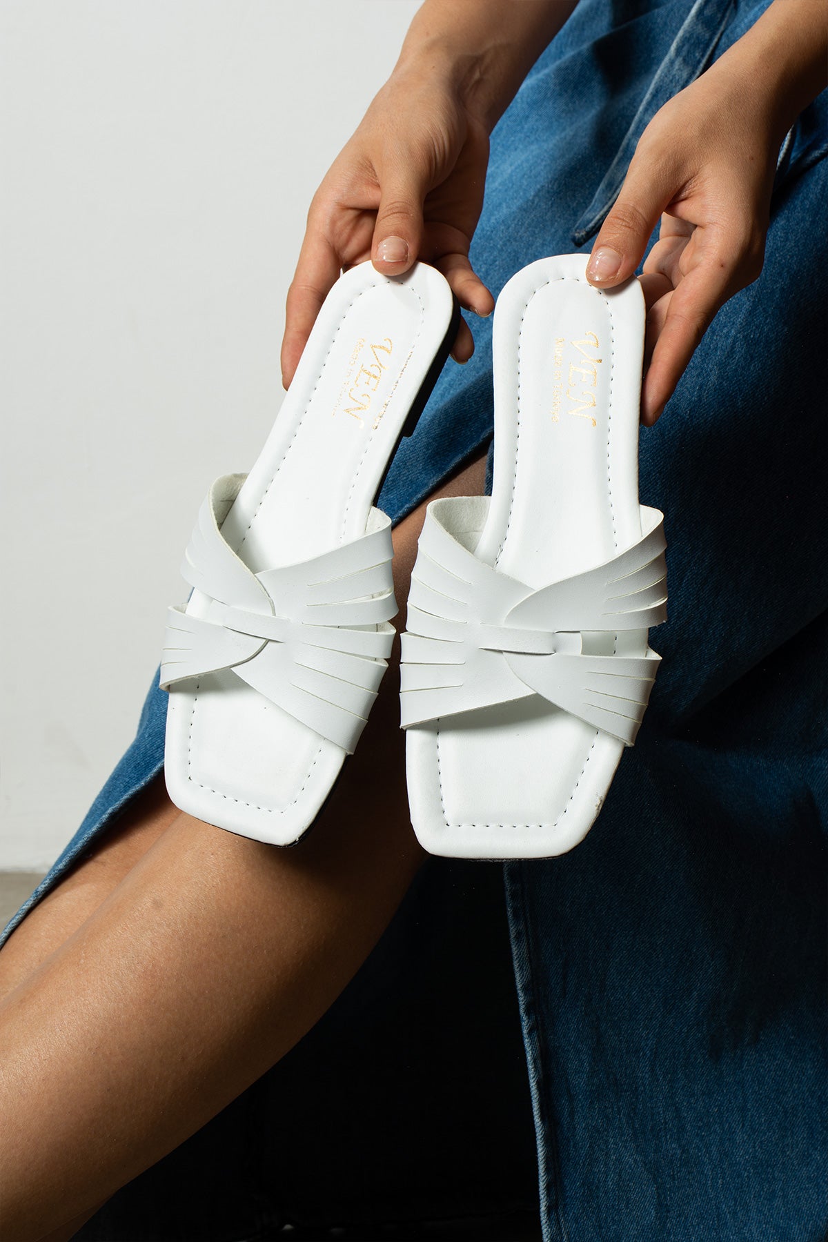 Sofia Kadın Beyaz Günlük Konforlu Kontrast Detay Terlik