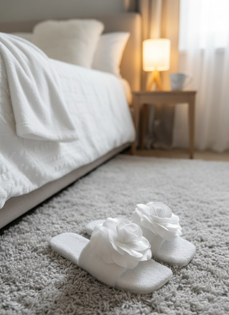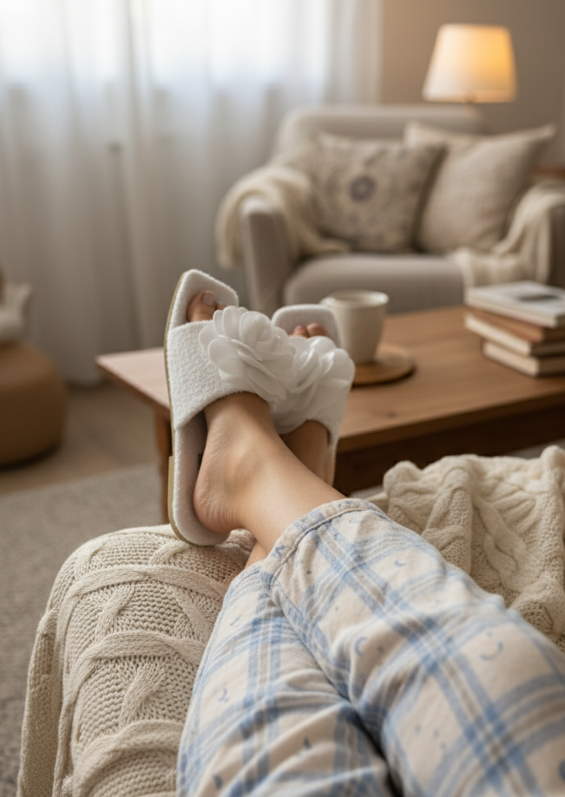 ✔️ Peluş Dış Yüzey: Yüksek kalite peluş kumaşı sayesinde ayağınızı sıcacık tutar, soğuk zeminlerden korur.